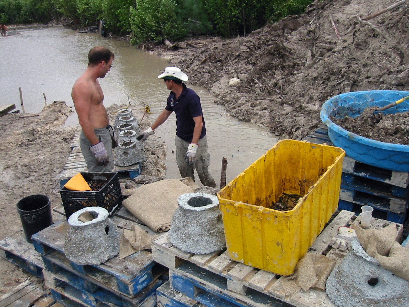 The last step before actual deployment into the nursery is loading up the floating raft...Tim Austin from the Cayman Department of the Environment was perfectly suited for the task with his long arms and tall height.
