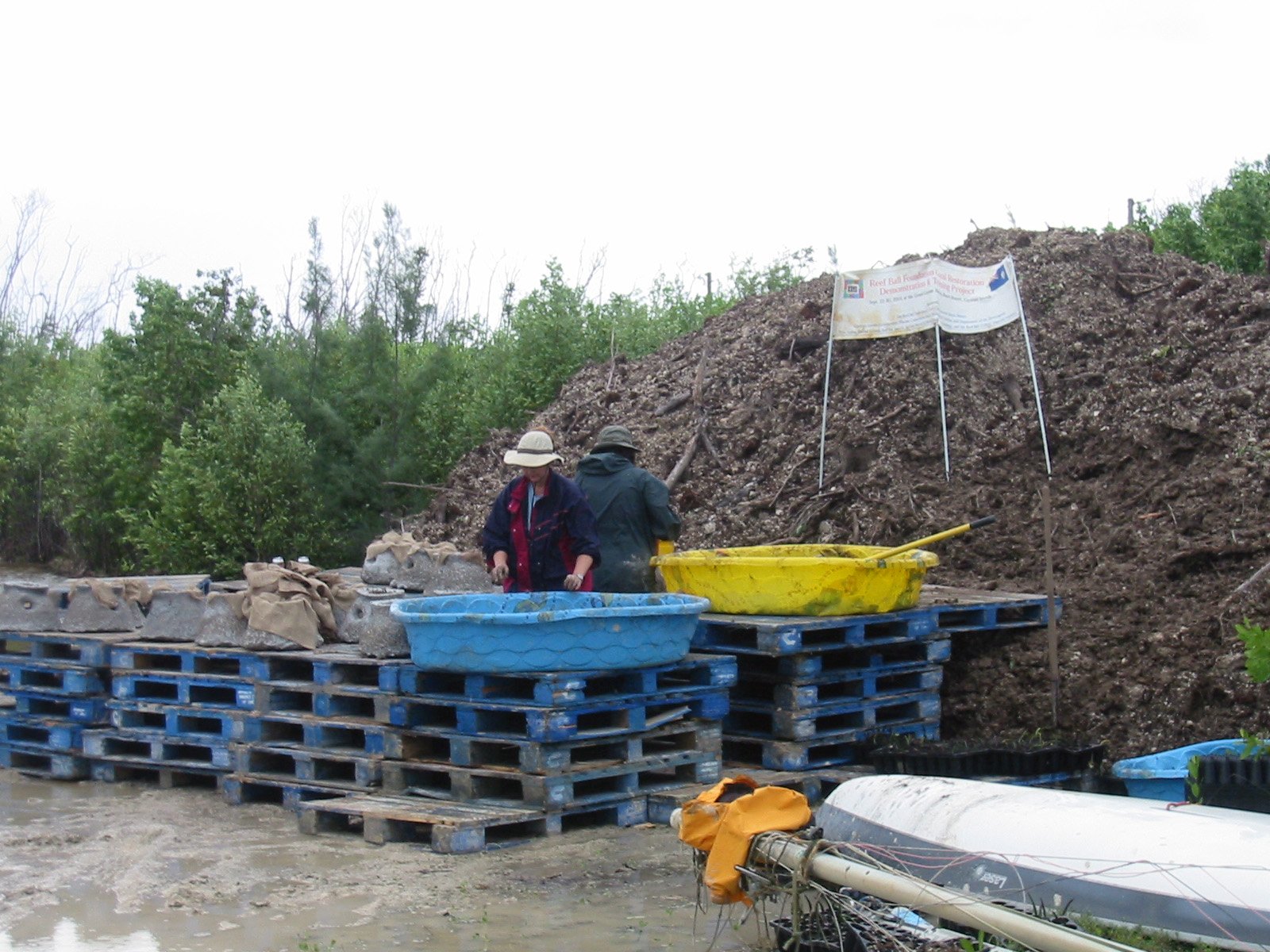 We used old pallets to create our potting table because they were easy to adjust height, provided plenty of working space and they were free! (Except for the team's work to pick them up!).