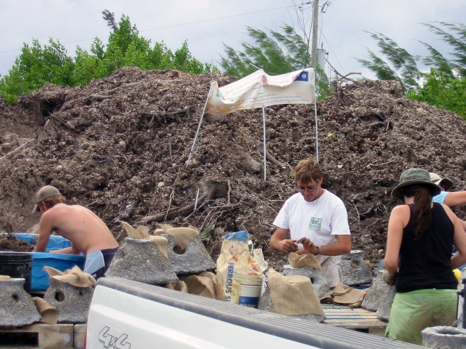 Todd Barber, Chairman of the Reef Ball Foundation measures fertilizer to be put into a Reef Ball.